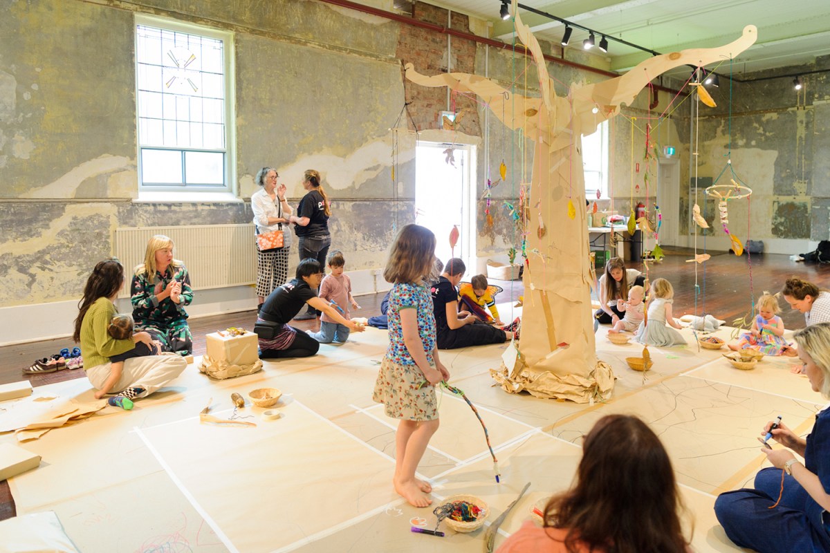 Using colourful paint pens, children and families can make their mark on locally foraged natural materials such as leaves, sticks and seed pods. Together with Polyglot artists, everyone adds to a community of sculpted trees. Play with wands, trace a line on the floor, and explore the hanging, drawing branches of Art Tree.