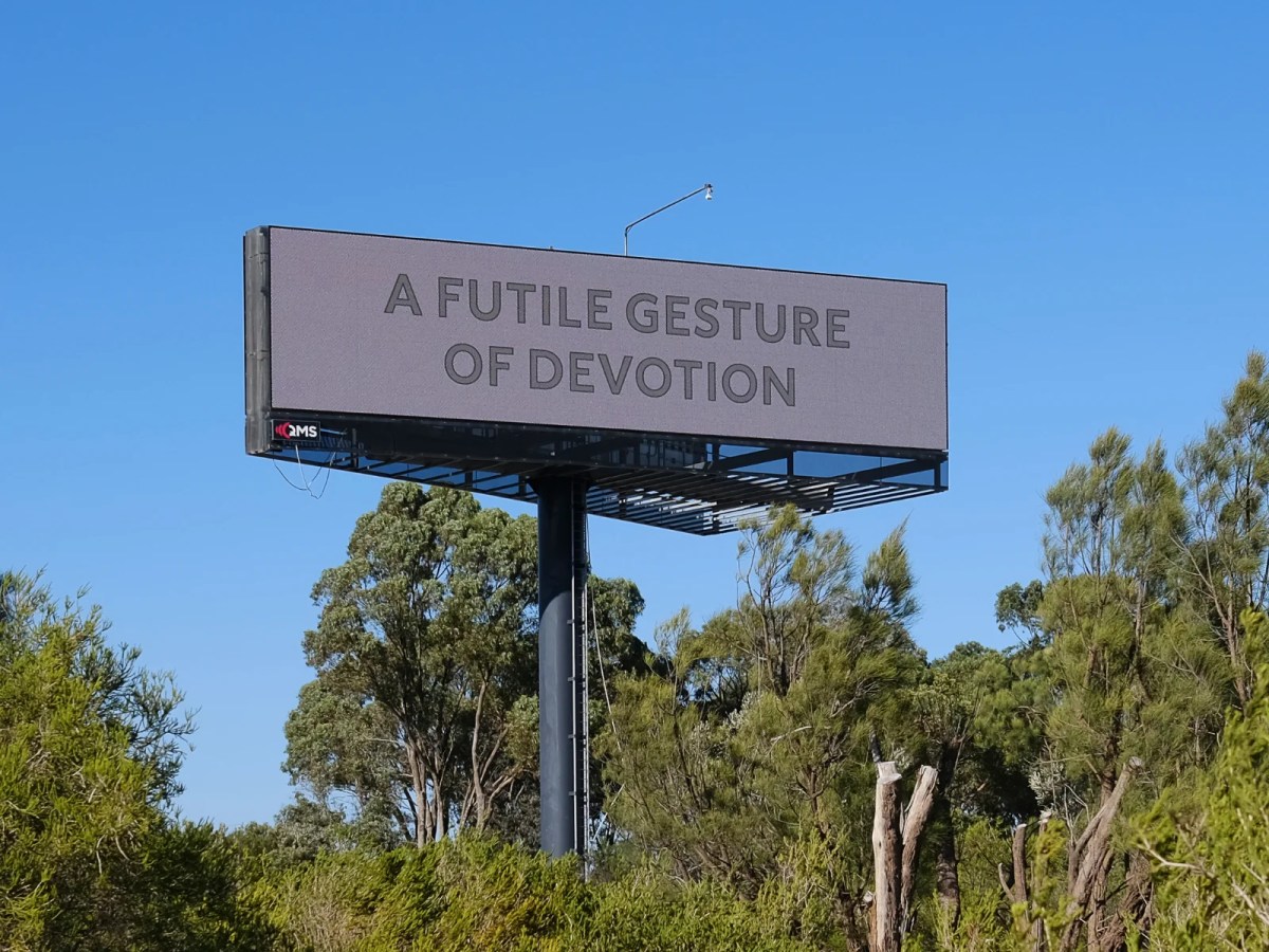 ‘Futile Gestures’ is a new body of work by Walyalup-based visual artist Sam Bloor developed in response to famed conceptual artist John Baldessari’s ‘Teaching a Plant the Alphabet’. Exhibiting alongside Baldessari’s work, ‘Futile Gestures’ explores themes of communication, the impending ecological crisis, and urban sprawl through photography and installation.
