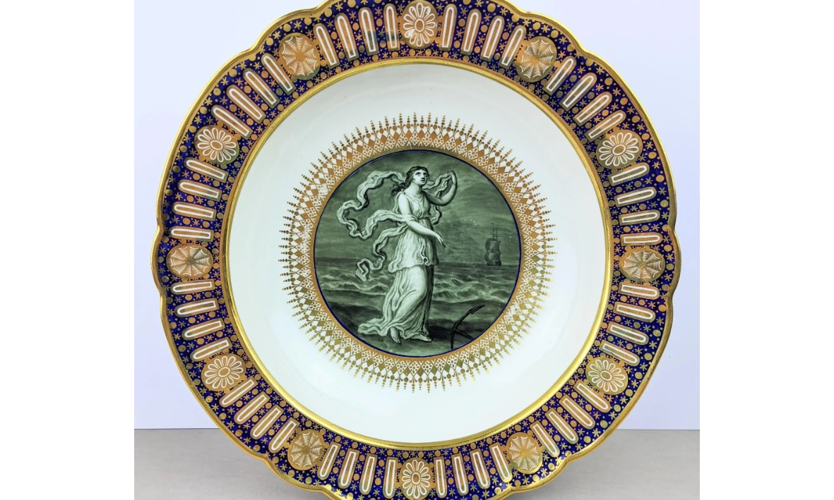 Image: Dish from the ‘Hope Service’ for the Duke of Clarence (later King William IV), 1790, by Flight, Worcester. Courtesy of the Coleman Collection.
