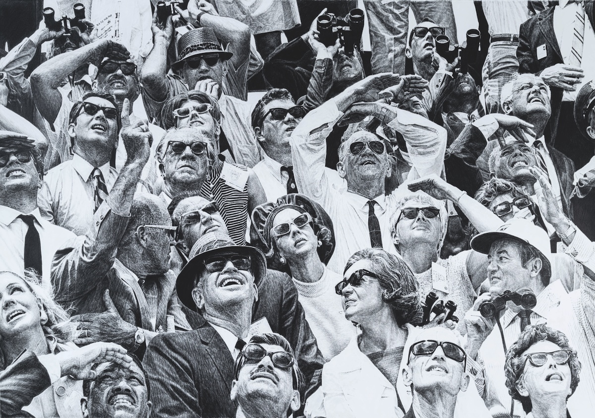 Sam Cranstoun Albert_Siepert_Points_Out_Highlights_of_Apollo_10_Liftoff_to_Belgium_King_and_Queen_GPN-2002-000010 2023. Pencil on paper, 105.5 x 152cm. UniSC Art Collection. UniSC Contemporaries commission supported by the De Deyne Family, 2025. Photo: Carl Warner. © Sam Cranstoun.