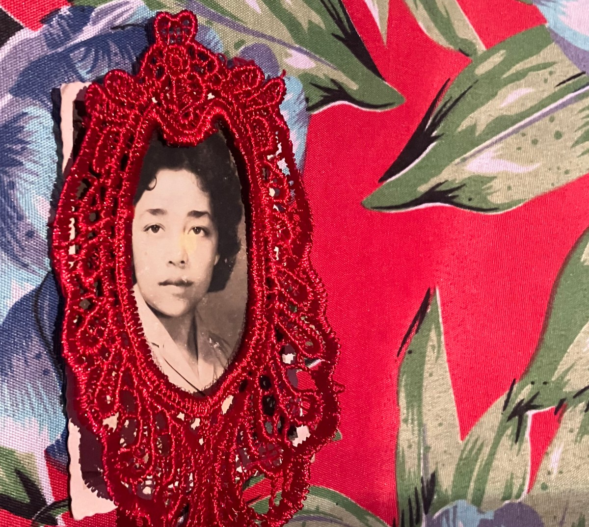 Enter a chamber of memory and light, where family photographs, embroidered traces, and suspended fabrics weave together stories of migration between Brazil and Australia.