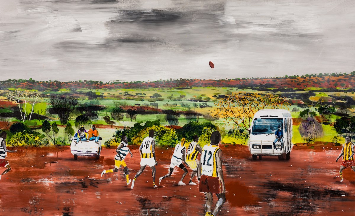 William Mackinnon’s Phoenix exhibition reflects the artist’s experiences living and working with Aboriginal communities in the Western Desert and Kimberley regions. As a field officer with Papunya Tula Artists in 2008-2009, Mackinnon witnessed both the extraordinary beauty of Aboriginal Country and the complex realities of remote community life, where isolation and hardship are balanced with cultural vitality and humour.