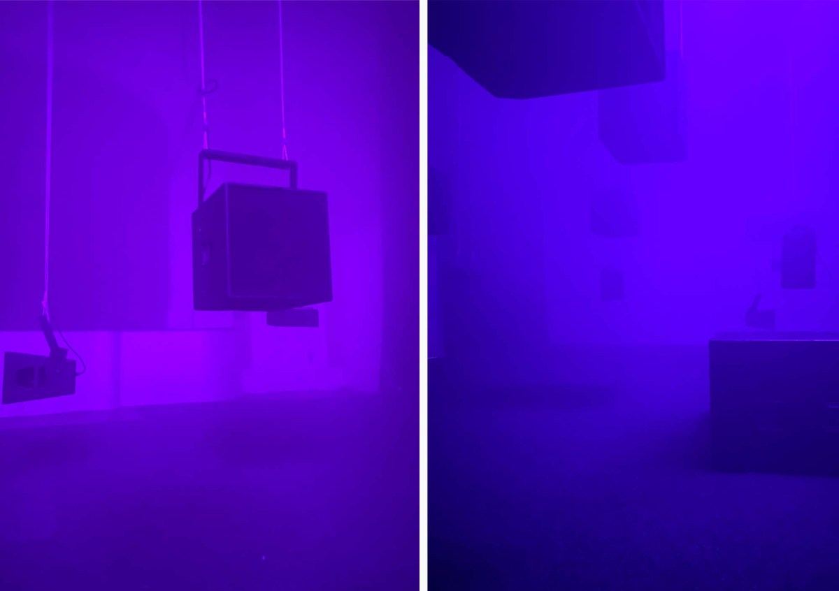 Housed in Victoria Hall in Fremantle (Walyalup) and open for ticket holders to experience for as little or long as they liked, this durational sound and light piece comprised a 20-minute abstract sound track, played on loop through 32 speakers suspended at differing heights throughout what is mostly a very dark space.