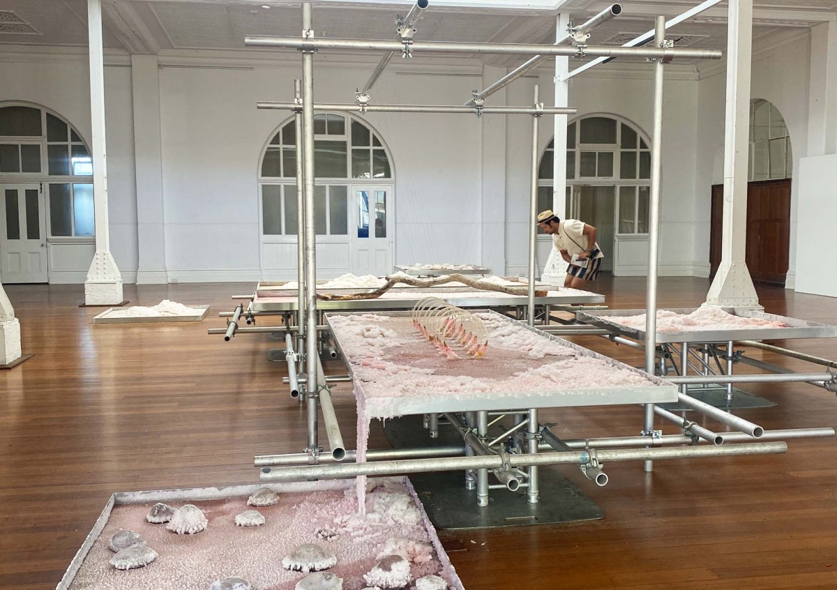 The artists’ crystallising salt lake work and accompanying screen-based video piece allowed audiences to reflect on our environment’s delicate natural balance. It was also a chance to consider how – as the narrator (and poet?) of the screen work tells us – these saline environments are being ‘fractured under the weight of [their] own stillness’.