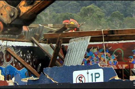 Aboriginal artworks demolished by McDonalds contractors, as protests against the fast-food giant continue.