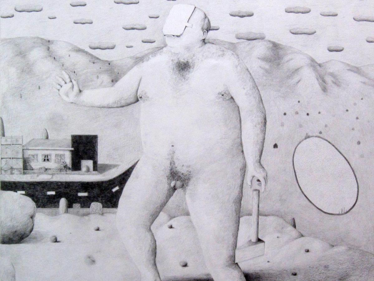 Cameron McRae’s portrait of world-famous wood chopper David Foster entitled ‘David Foster enters the Burnie Betta Milk Wearable Paper Art Prize’, has taken out the RACT Insurance Tasmanian Portraiture Prize.