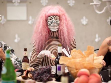 Detail of Justin Shoulder in “B+W Dinner” by Alexandra Clapham and Penelope Benton performed at Carriageworks 2012. Photo by Daniel Boud, Courtesy of Art Month Sydney and SafARI.org
