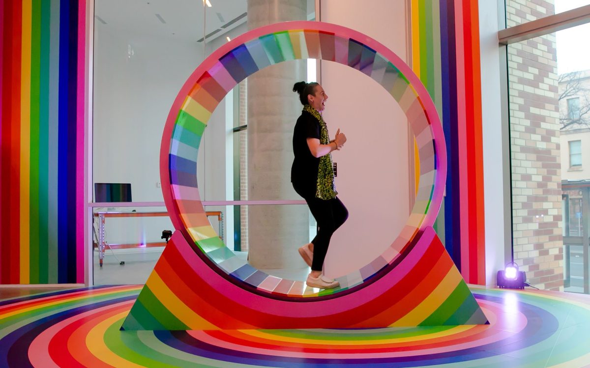 If you would rather run from your troubles, Hirohito Tango and Dr Emma Burrows’ ‘Wheel’ will have you stepping up for research. The massive rainbow device might just entice you to become a human hamster and contribute to neuroscientific research on exercise and mood.