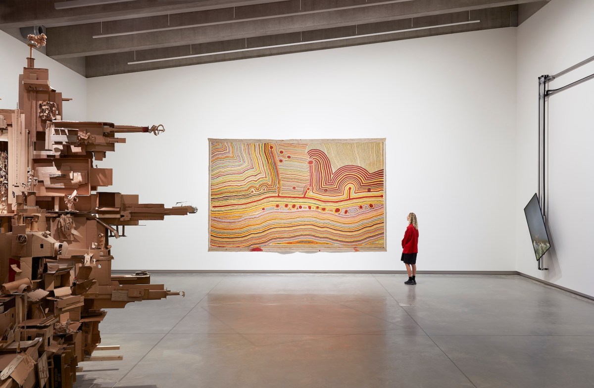 For this suite of new commissions for the exhibition, Thinking together: Exchanges with the natural world, the usual flow between the two main gallery spaces has been closed, forcing visitors to back-track and enter the smaller gallery via a newly created hands-on play zone or through a hang of paintings from the Boyd collection, again a new commitment by Bundanon.