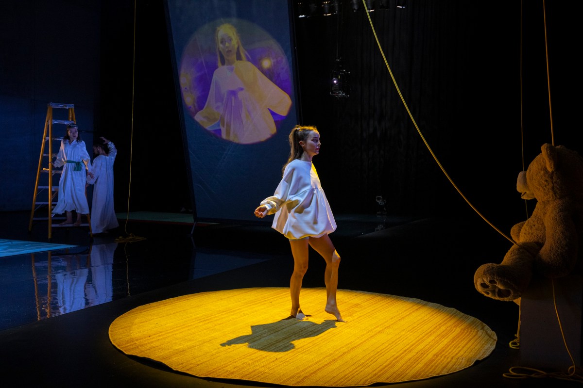 Although idk was unafraid to go to dark places, the creative team understood issues of the body are multifaceted, and exist as shades of grey, not black and white. Sometimes, the tone of a certain vignette could mean different things for different audience members. One such scene featured an actor in a life-size teddy bear suit, singing a song about losing her best friend (a child who has moved on to school, where bringing a teddy bear with them is seemingly uncool). It was a sequence I found surprisingly moving and resonant, whereas other audience members were laughing along. After all, the theatre is a democratic space, and these creatives and performers are open to all kinds of responses.