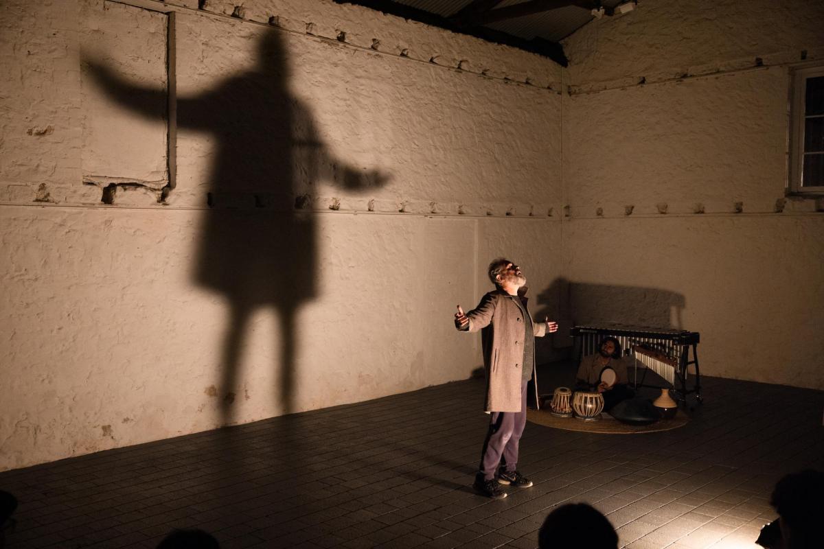 Musician Pavan Kumar Hari used Indian classical musical instruments to create a mellifluous sonic backdrop for the performance, setting the pitch and tempo for the storytelling as it unfolded. Sound designer Kingsley Reeve’s thoughtful conceptualisation of the reverberation of live music within the walls of an art gallery melded beautifully with Hari’s gentle and masterful performance. Hari impressed with his attentiveness and skill.