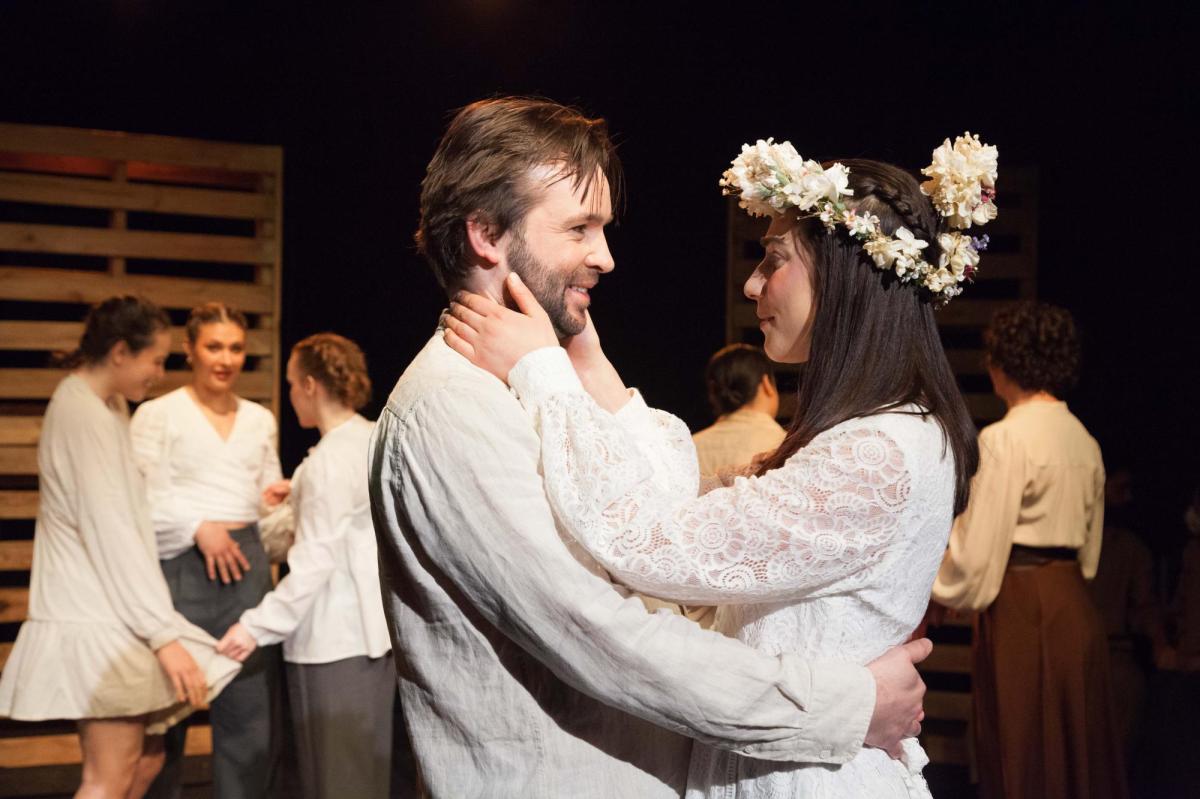 Sometimes, there are elements of a text that are so profoundly iconic that you just don’t touch them. Happily this is the case for the culturally significant orange blossoms used in the play and in traditional Spanish weddings. But the amorphous blobs of people depicted on stage lack clarity in portraying Moon and Death, let alone convincing us that this directorial decision is appropriate.